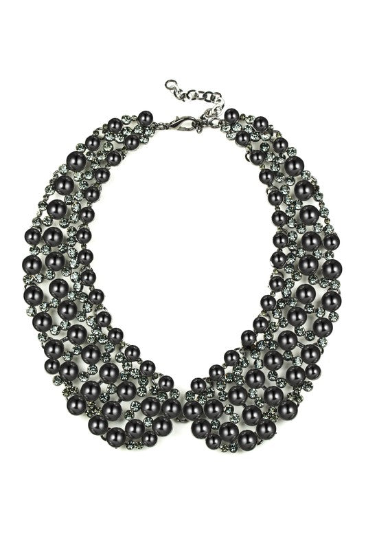 Glamorize your appearance with this stunning statement necklace. This necklace is comprised of various size black beads.