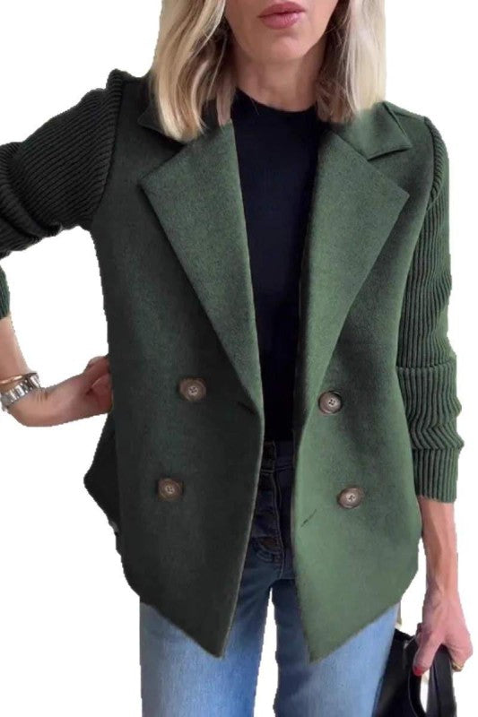 Turn heads in our chic sweater blazer featuring a double-breasted design and oversized buttons.  Perfect for office meetings or casual outings, it paisley perfectly with a range of outfits.
