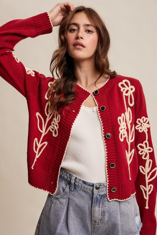 Embroidered Floral Knit Cardigan